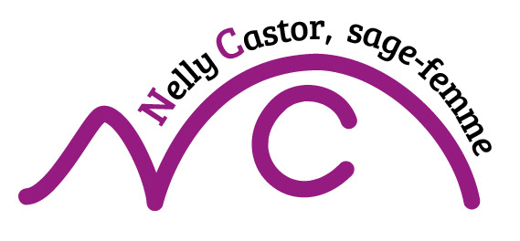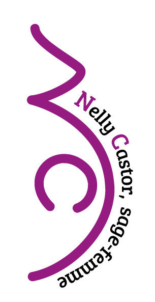 Projet de création d'un logo pour la sage-femme Nelly Castor. Logo double-sens (initiales N.C. / femme enceinte avec son bébé dans le ventre)